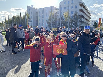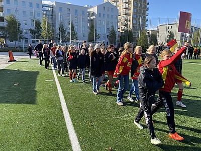 Vi tackar alla spelare, ledare och fotbollsföräldrar som kom och gjorde vår föreningsavslutning till en riktigt fin TFF-dag! Alla aktiva fick möjlighet att marschera in till publikens jubel i halvlek, och därefter fick alla en goodiebag från Tyresö Centrum!