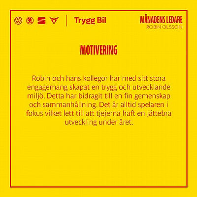 Varje månad under säsongen kommer vi att i samarbete med TryggBil utse "Månadens Ledare", ett sätt att uppmärksamma ett antal av alla våra fantastiska ledare som finns i föreningen. Vår huvudpartner TryggBil ordnar med pris till vinnaren!