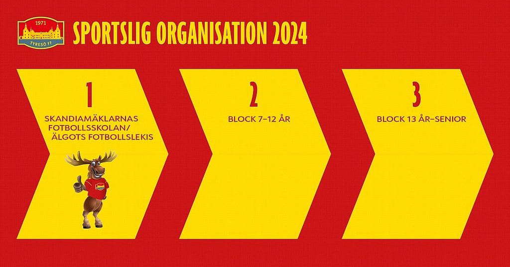 Nytt för säsongen 2024 är att föreningens sportsliga organisation kommer att delas upp i 4 olika block, med en blockansvarig för respektive del. Åldersblocket 7-12 år kommer att delas upp utifrån respektive idrottsplats, där en blockansvarig kommer ansvara för verksamheten på Strandplan med anslutande planer, och en blockansvarig kommer att ansvara för verksamheten på Tyresövallen med anslutande planer.