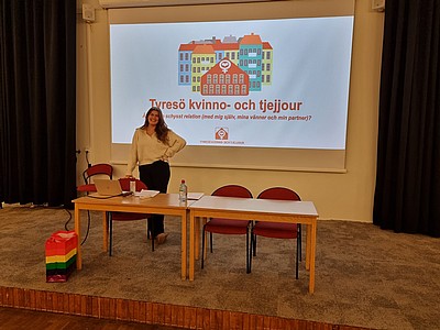 Näst på tur att ta del av detta är F2011 som var på plats i kvarnhjullet igår kväll och fick lyssna till Jasmine Melker och Ida Rasmusson, verksamhetsansvarig på Tyresö Kvinno- och tjejjour som pratade med tjejerna om psykisk ohälsa, sunda och osunda relationer samt utsatthet i sociala medier.