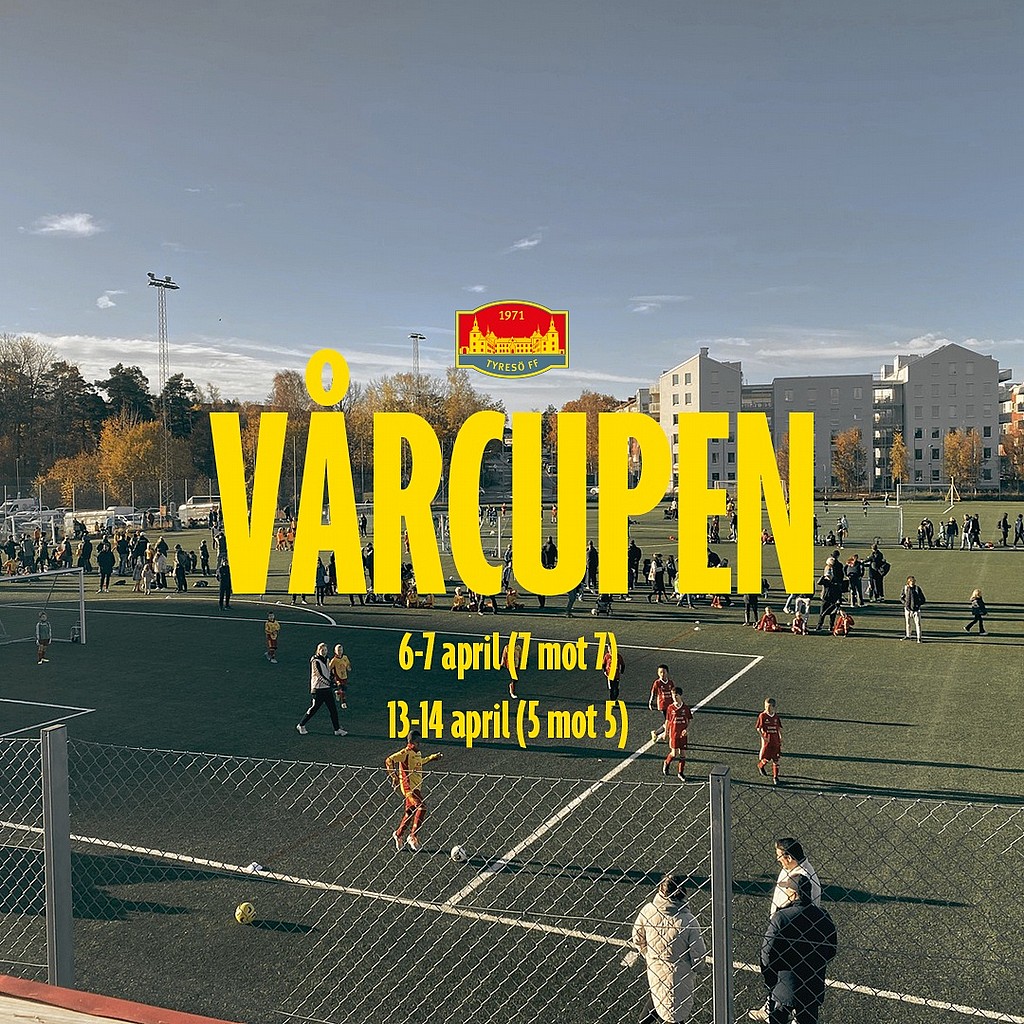 Det går nu att anmäla sig till vårens stora fotbollsfest, Vårcupen! Cupen spelas 6-7 april(7 mot 7) och 13-14 april(5 mot 5) och är öppen för anmälan för alla flicklag och pojklag födda 2012-2017.