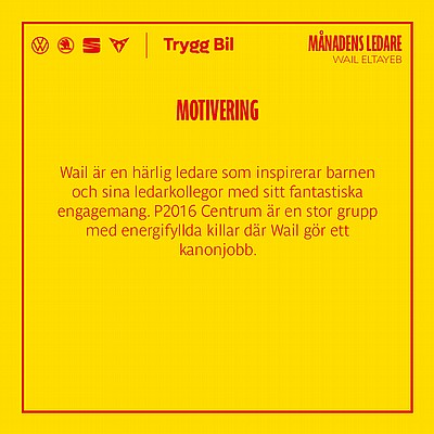 Vinnaren för Augusti är vår mycket uppskattade ledare Wail Eltayeb, som med sitt härliga och inspirerande ledarskap gör ett ovärderligt jobb, såväl för föreningen som P2016 Centrum specifikt. Stort grattis Wail! 😍