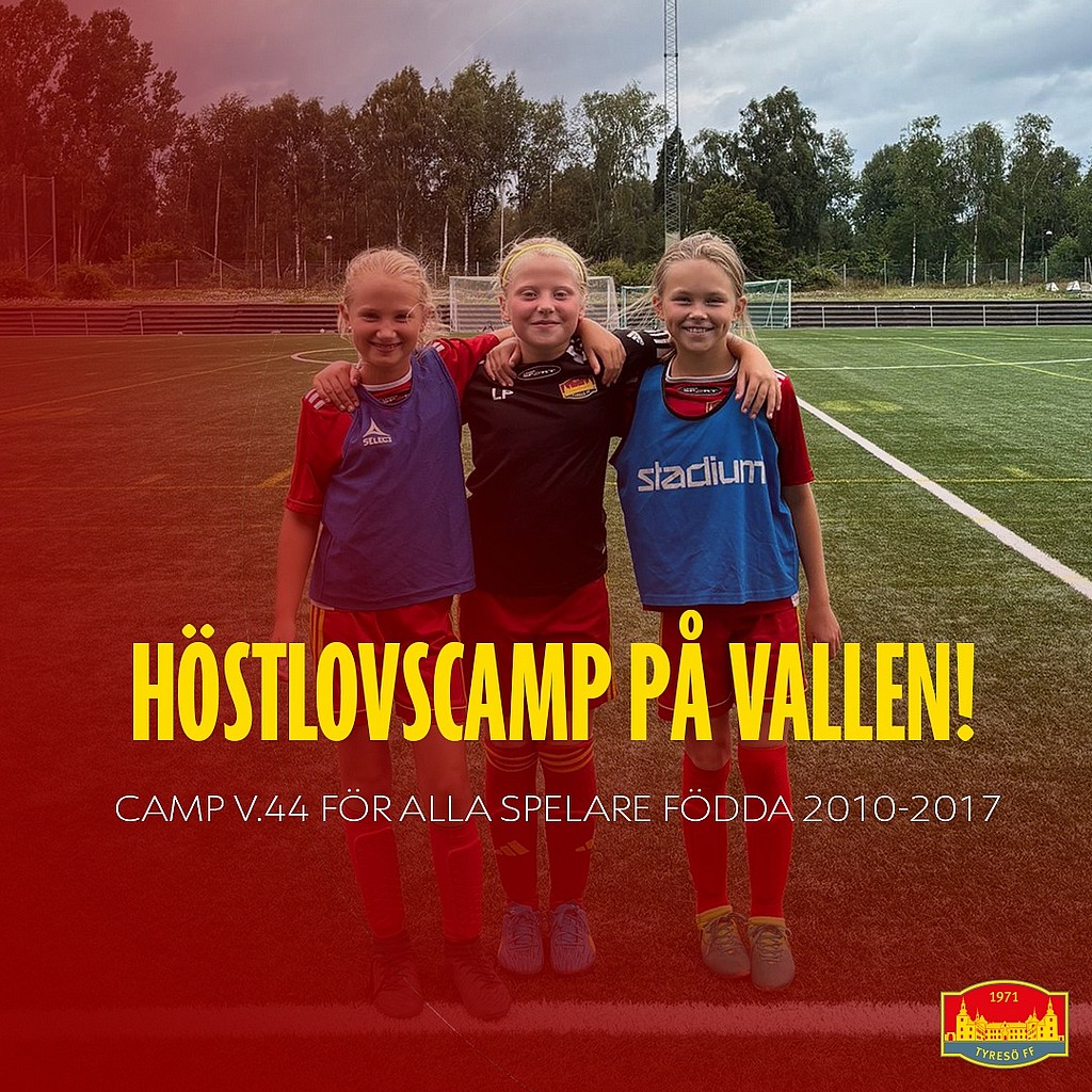 Under höstlovet vecka 44 så anordnar Tyresö FF camp på Tyresövallen. Det går att anmäla sig mån-ons, tor-fre alternativt hela veckan. Campen pågår 12.00-15.00 varje dag och innehåller två roliga träningar med fruktpaus mellan passen. Träningarna leds av föreningens uppskattade ungdomsledare samt personal från Tyresö FF.