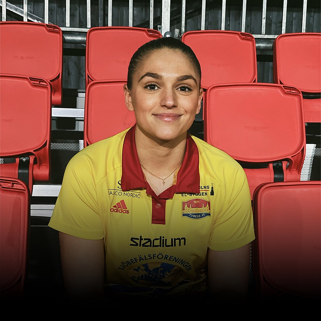 Michaela Larsson är den 14e av damtruppens 22 spelare som fostrats i Tyresö FF.