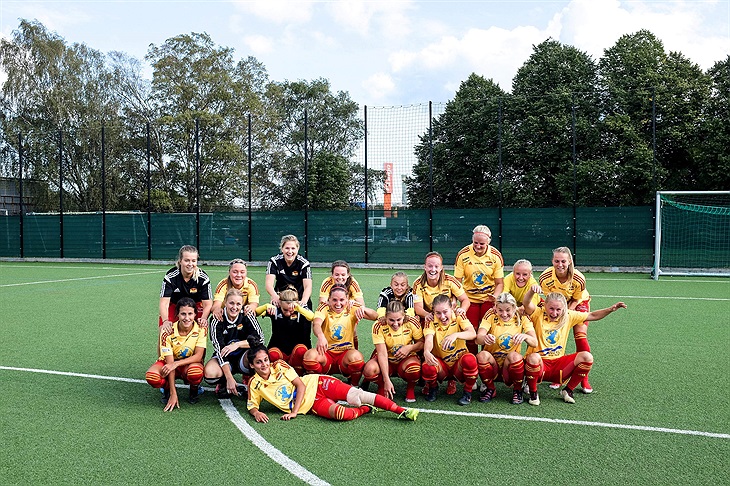 Det blir lite tilltrasslat i straffområdet men troligtvis är det Lawlaw Nazeri? som till sist petar in 0-3 från nära håll. 10 minuter senare är det dags igen. Nyss inbytta Ida Ahlbom lägger ut bollen på högerkanten till Lawlaw Nazeri som slår en crossboll till Lina Malmborg på vänstern. Hon tar med sig bollen några meter och tåpajar/chippar sen in 0-4 i det bortre krysset.