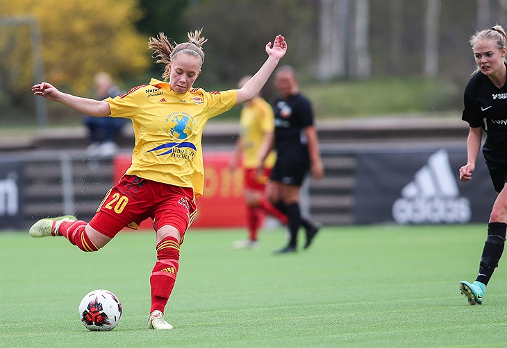 Det skulle visa sig vara så även denna dag. Sätra börjar bäst och kommer omgående till farligheter mot hemmamålet. Det ser lite nervöst ut i hemmalaget och det trygga passningsspelet lyser med sin frånvaro. De chanser som Tyresö ändå har inledningsvis blir gång på gång helt riktigt avvinkat för offside. I den 8:e minuten Sätrahörna från vänster som Jempa Bakai i målet plockar ner. Det blir till ett uppspel och inne i Sätras straffområde blir Frida Thörnqvist nerdragen men ingen åtgärd från domaren. Tyresö har annars svårt att komma till några riktiga farligheter och gästerna kan enkelt spela sig ur situationerna. 12: minuten och Lina Malmborg spelar en djupledsboll igenom Sätra försvaret till en framrusande Frida Thörnqvist men där är Sätramålvakten bra med. Efter den situationen börjar hemmalaget att få kontroll på spelet mer och mer. Vi får se fler skott mot mål och det skapas både hörnor och frisparkar. I den 25:e minuten blir Maria Poli liggande på planen och behöver plåstras om. När hon väl kommer in på planen igen är hon riktigt nära att trycka in 1-0 på volley efter inlägg från vänsterkanten av Frida Thörnqvist. Skottet går tyvärr rakt på målvakten. 15 minuter kvar av halvleken och Ida Ahlbom fintar sig fram på högerkanten och ända in i straffområdet....nästan. Hon blir bryskt fälld precis på linjen. Efterföljande frisparken går högt över.