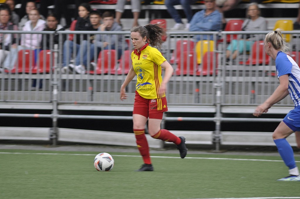 Tyresökontring ett par minuter senare. Ida Ahlbom inlägg från vänster mot Jennifer Egelryd som spelar tillbaka till Elsa Bromé som kommer till avslut men bollen går högt över ribban.